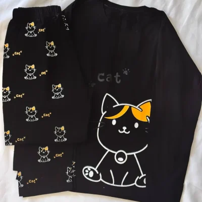 ست دو تیکه آستین دار طرح کَت رنگی جنس ۱۰۰٪ نخ پنبه مناسب سایز ۳۸ تا ۴۶ دورباسن:۱۳۰درحالت عادی تا