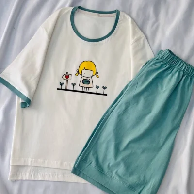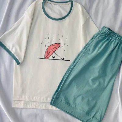 ست تیشرت شلوارک مناسب سایز ۳۶ تا ۴۶ جنس ۱۰۰٪ نخ و پنبه قد جلو تیشرت ۵۵ قد پشت تیشرت