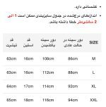 - فری سایز مناسب سایز ۳۸ تا ۴۸ (سایر مدل ۴۴)قد تیشرت ۷۴ دور سینه عادی ۱۱۵ با کشسانی ۱۳۴دور کمر با کشسانی ۱۳۸ قد شلوار ۹۷ فاق ۳۹عدد مشکی عدد کرم عدد شیری