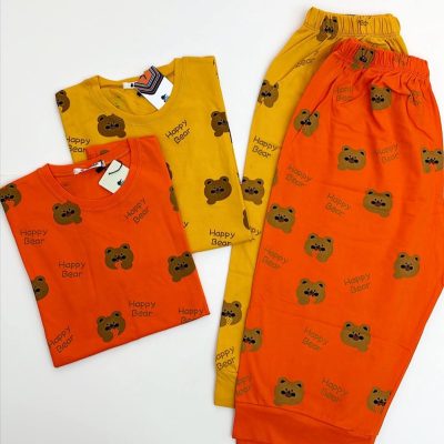 ست دو تیکه تیشرت شلوار خرسی رنگی