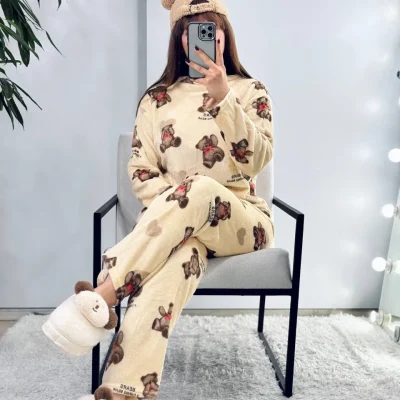 ست دو تیکه تیشرت شلوار خرسی رنگی