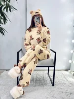 ست دو تیکه تیشرت شلوار خرسی رنگی