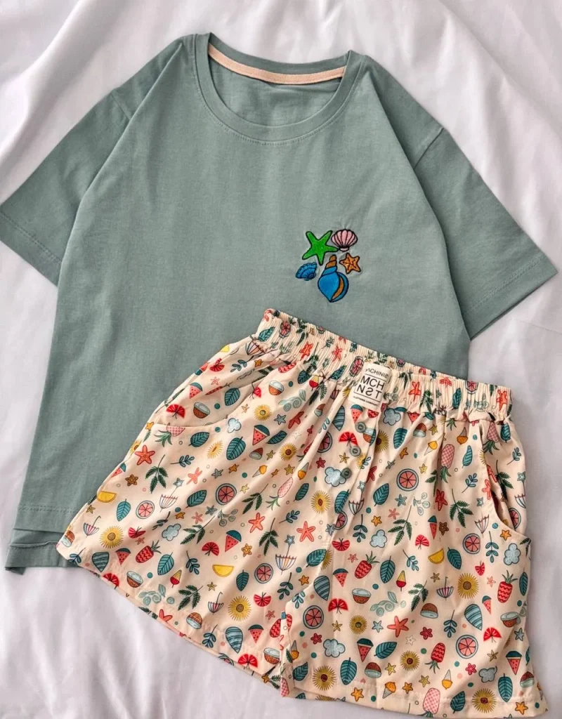 ست تیشرت شلوارک طرحدار کد ۰۲۰۱۰۱۵