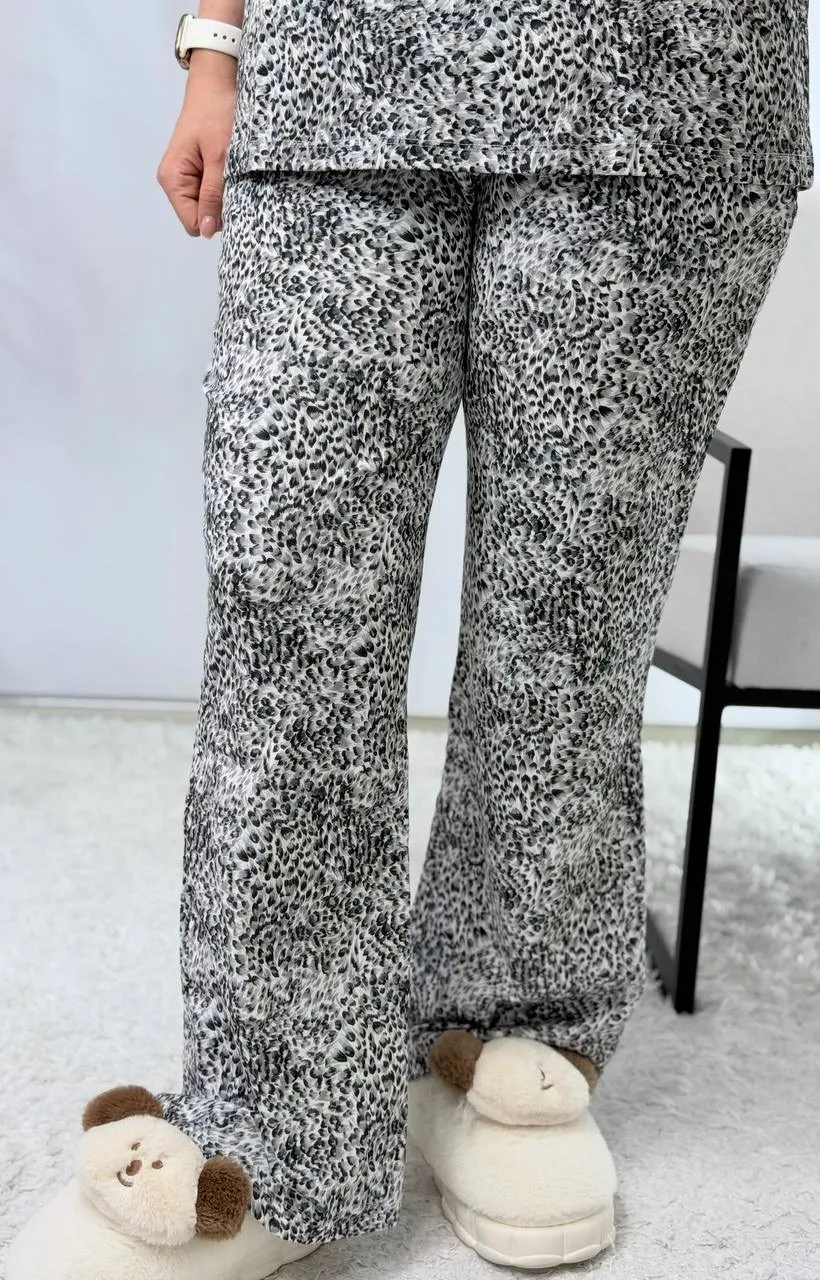 ست تیشرت شلوار پلنگی طوسی کد ۰۲۰۱۰۹۳