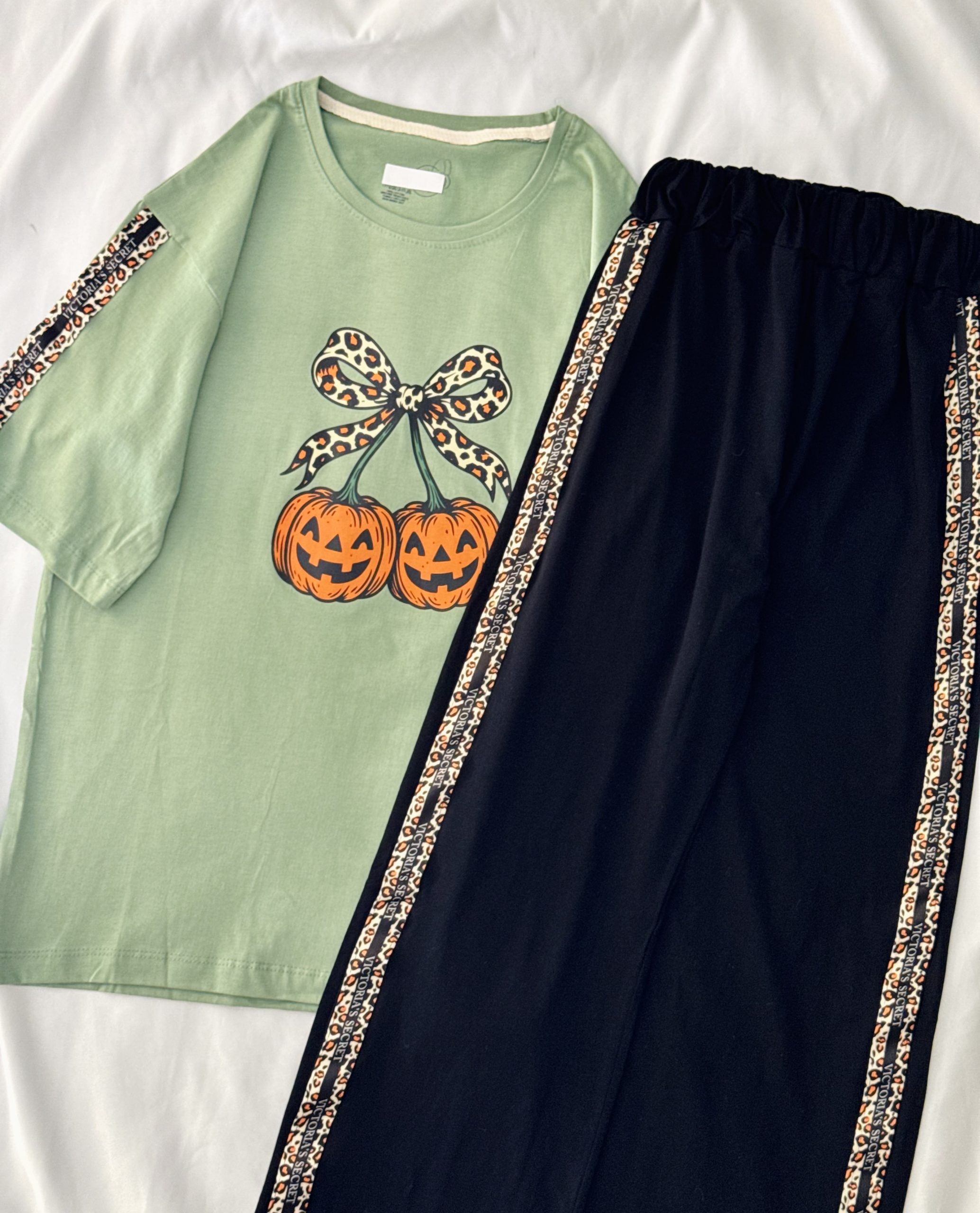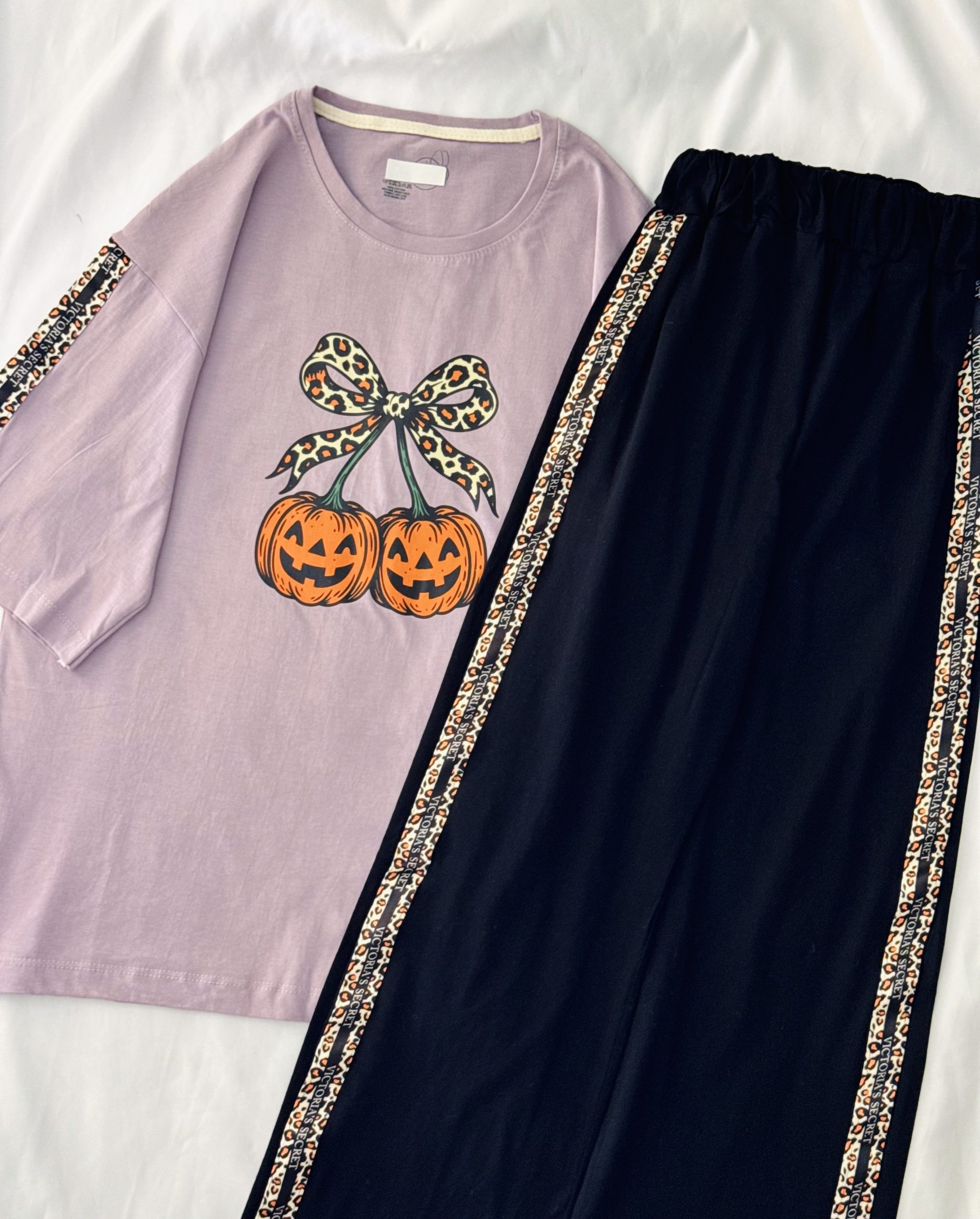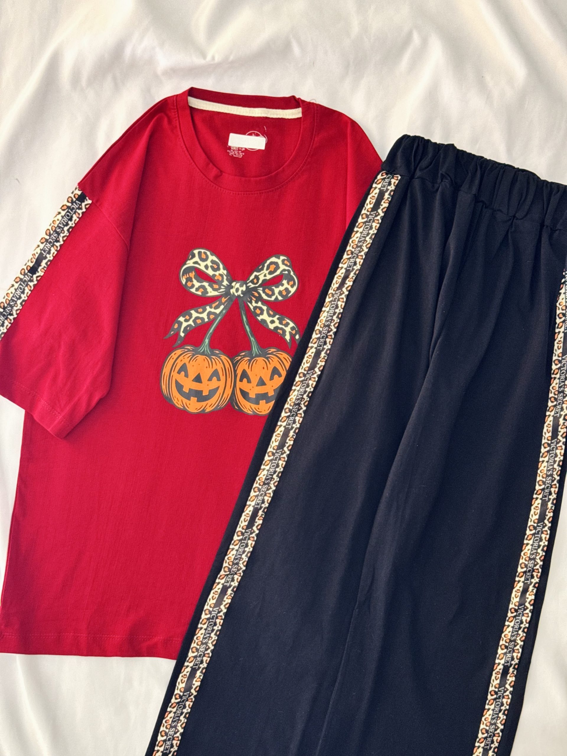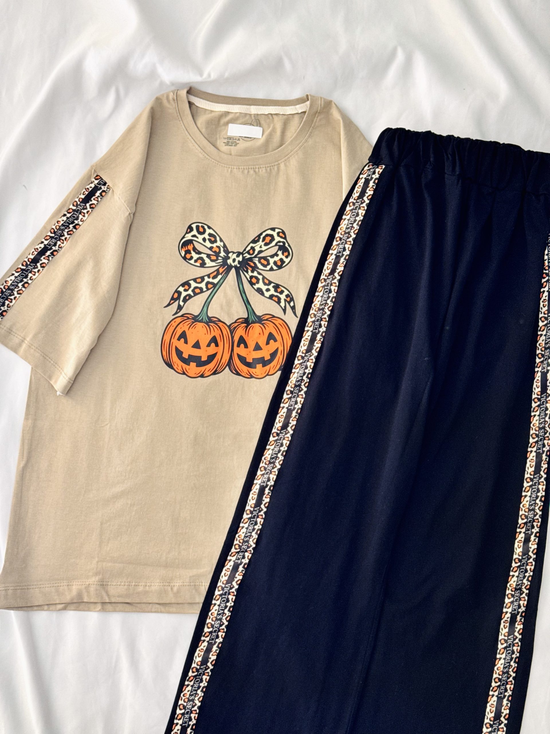 ست تیشرت لانگ و شلوار کدو هالوینی کد ۰۲۰۱۰۷۱