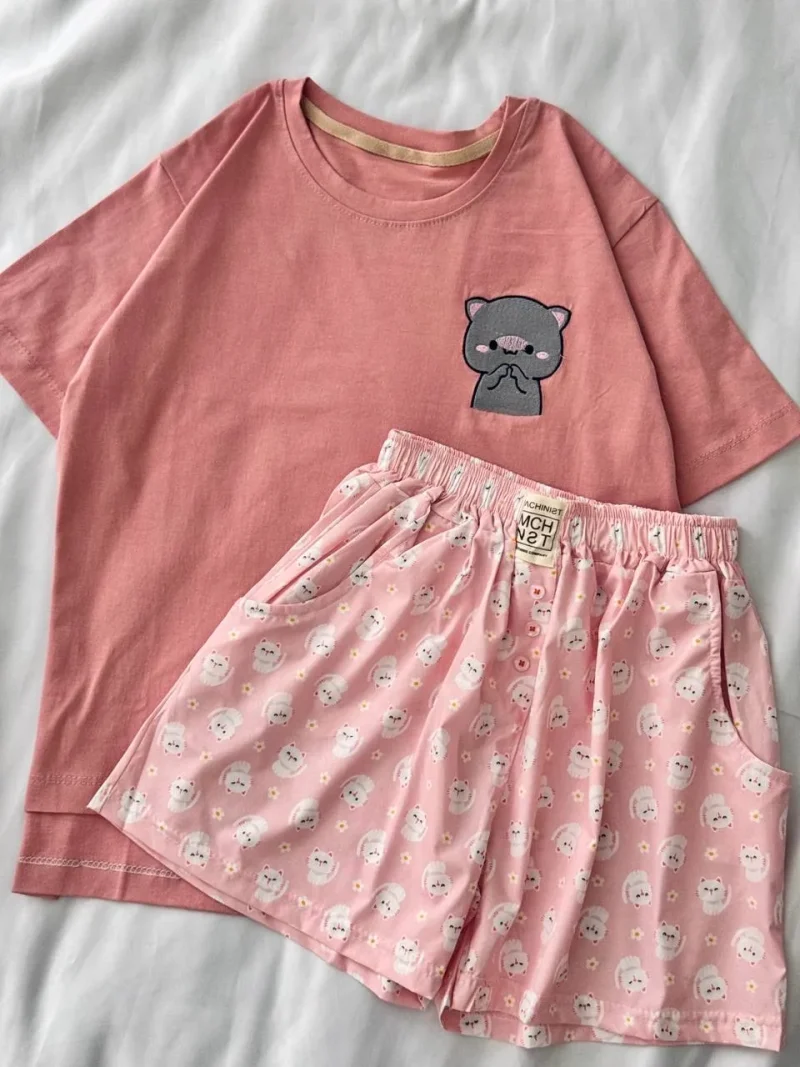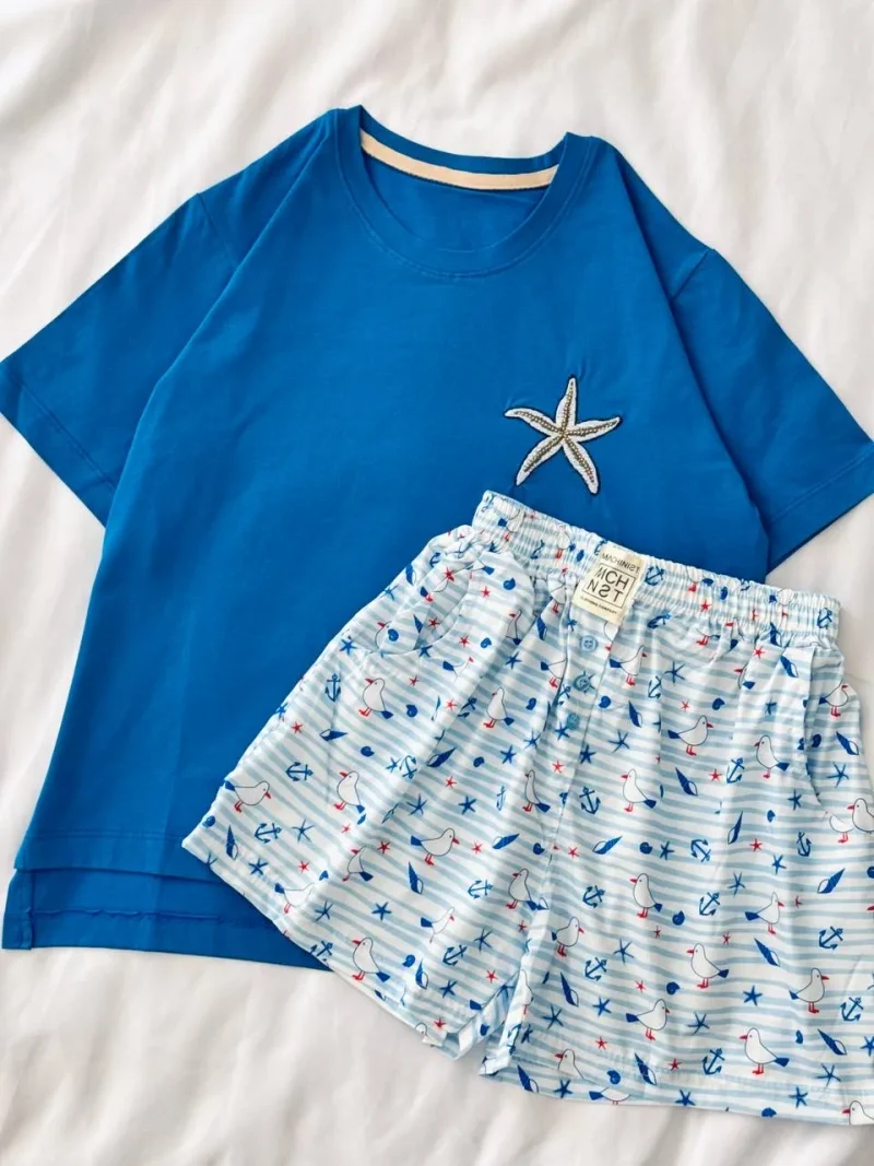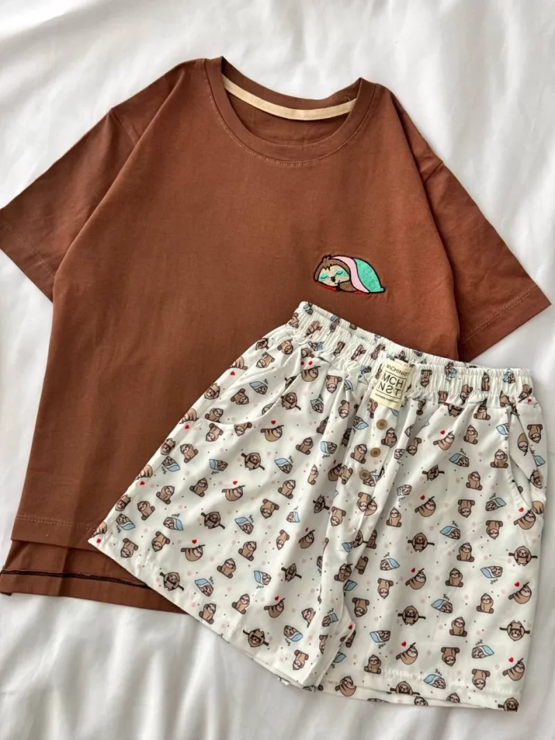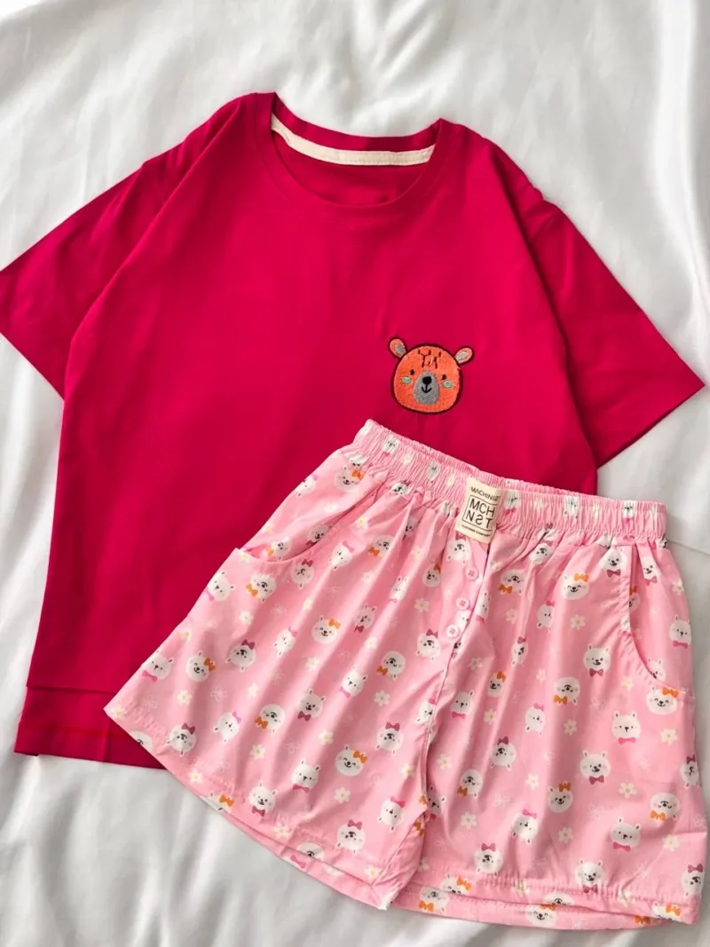 ست تیشرت و شلوارک طرحدار کد ۰۲۰۱۰۱۴