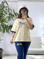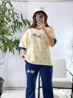 نخ پنبه کارن فری سایز دورسینه:۱۲۲_۱۳۲ قدبلوز۶۵ قد استین از یقه۴۸ دورباسن:۱۰۶_۱۲۰ دورران:۵۶_۷۰ قد فاق:۳۴ قدشلوار:۱۰۲