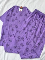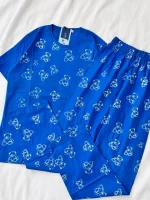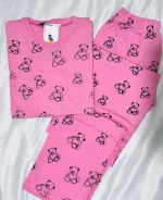 ست دو تیکه تیشرت و شلوار نخ پنبه ای خرسی رنگی