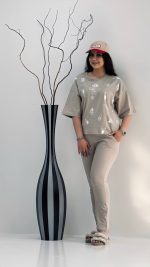 نخ پنبه کارن فری سایز دورسینه:۱۲۲_۱۳۲ قدبلوز۶۵ قد استین از یقه۴۸ دورباسن:۱۰۶_۱۲۰ دورران:۵۶_۷۰ قد فاق:۳۴ قدشلوار:۱۰۲
