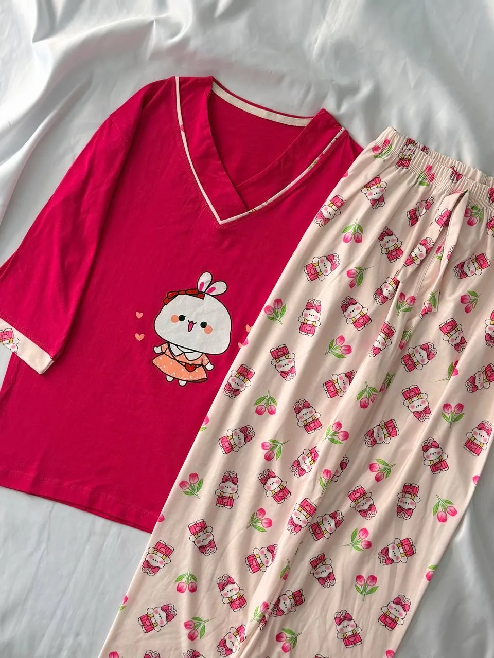 - ست دو تیکه پینتسرتی تیشرت لانگ وشلوار